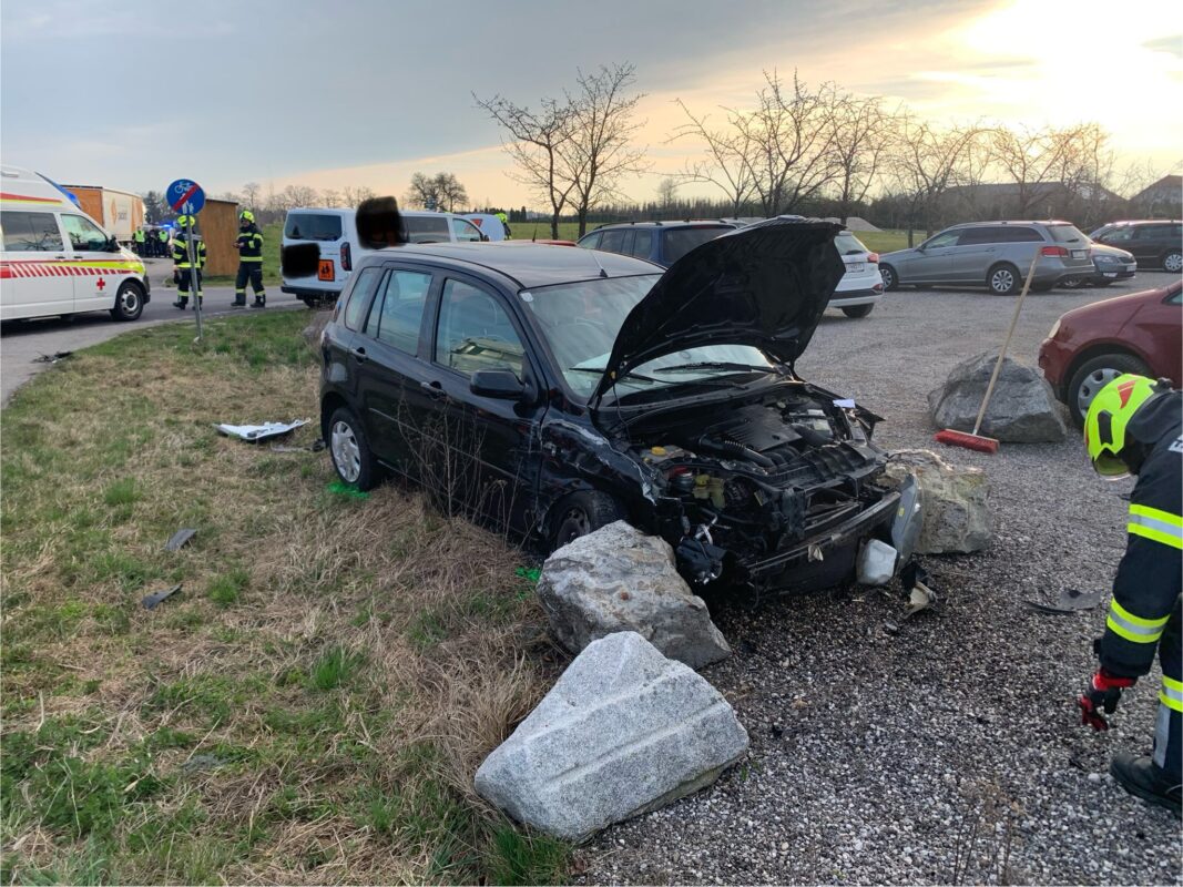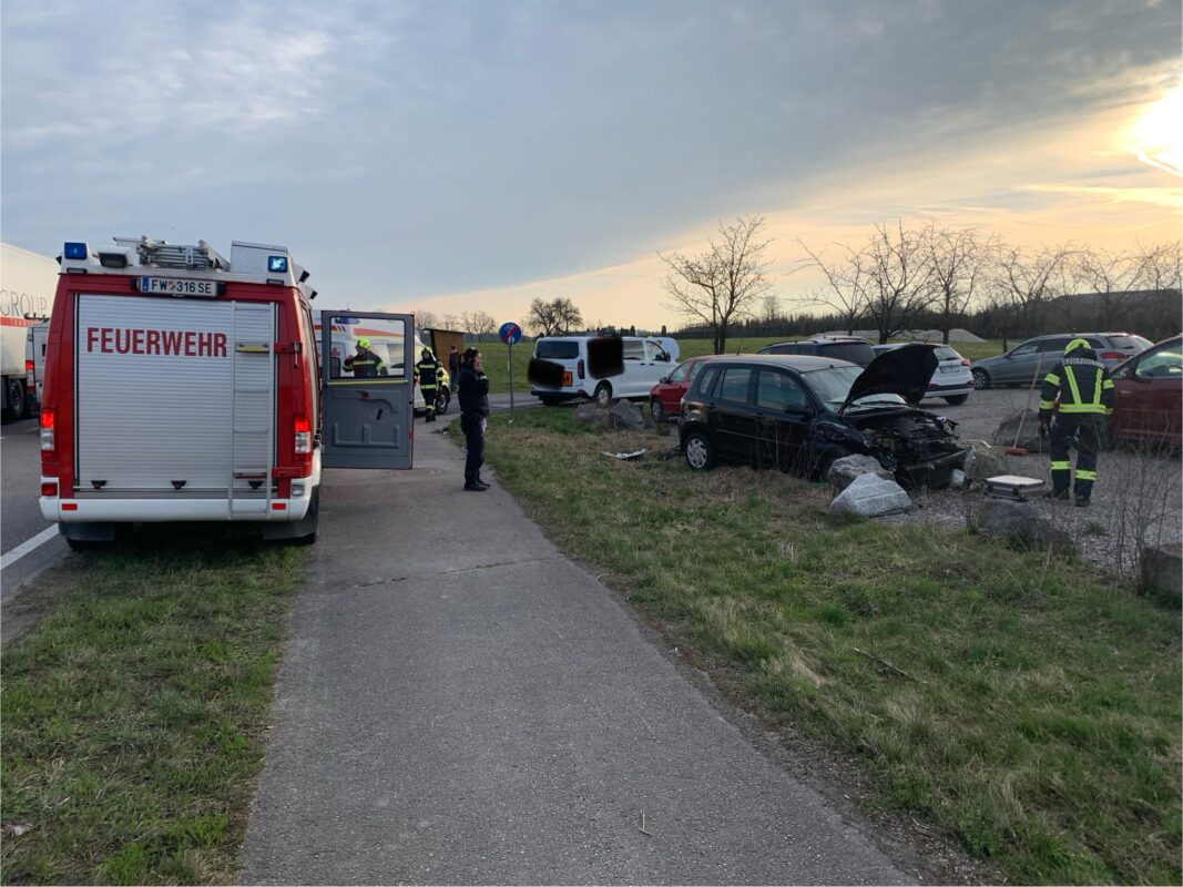 Ein Pkw war mit dem morgendlichen Kindergartenbus kollidiert. Beim Eintreffen stellten wir fest, dass keine Personen oder Kinder mehr in den Fahrzeugen waren. Die Insassen der Fahrzeuge wurden bereits vom Roten Kreuz und dem Notarzt betreut und versorgt.